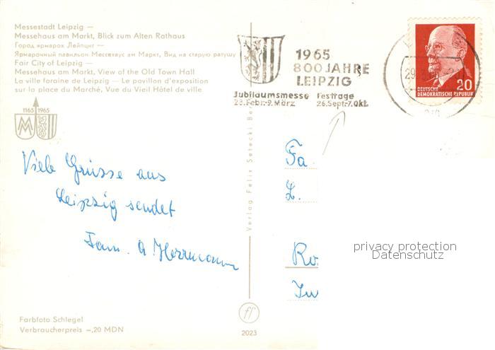 73778830 alte Postkarte LEIPZIG Sachsen Messehaus am Markt Blick zum Alten Rathaus postalisch gelaufen Erhaltung siehe scans [FriedD77] KatCode: 11110014365000