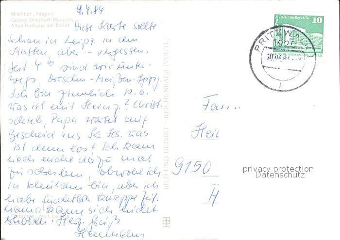 72280499 alte Postkarte LEIPZIG Sachsen Milchbar Pinguin Georgi-Dimitroff Museum altes Rathaus Markt postalisch gelaufen Erhaltung siehe scans KatCode: 11110014365000