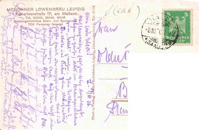 74014417 LEIPZIG Sachsen Muenchner Loewenbraeu Gastraum postalisch gelaufen Erhaltung siehe scans [WerneD78] alte Postkarte Wern Katcode 11110014365000