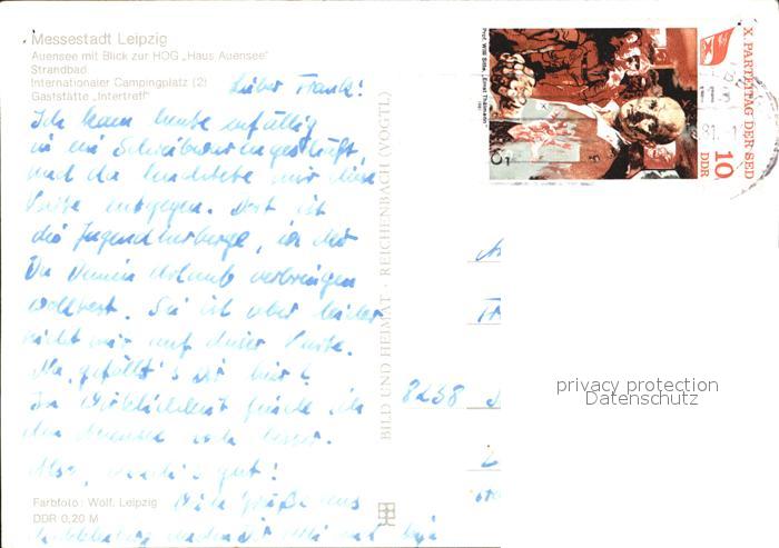 72406187 alte Postkarte LEIPZIG Sachsen Naherholungsgebiet Auensee HOG Haus Auensee Strandbad Campingplatz Gaststaette Intertreff postalisch gelaufen Erhaltung siehe scans KatCode: 11110014365000