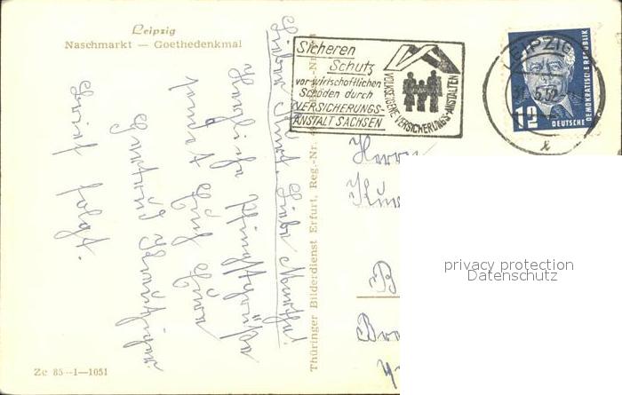 72038673 alte Postkarte LEIPZIG Sachsen Naschmarkt Goethedenkmal postalisch gelaufen Erhaltung siehe scans KatCode: 11110014365000