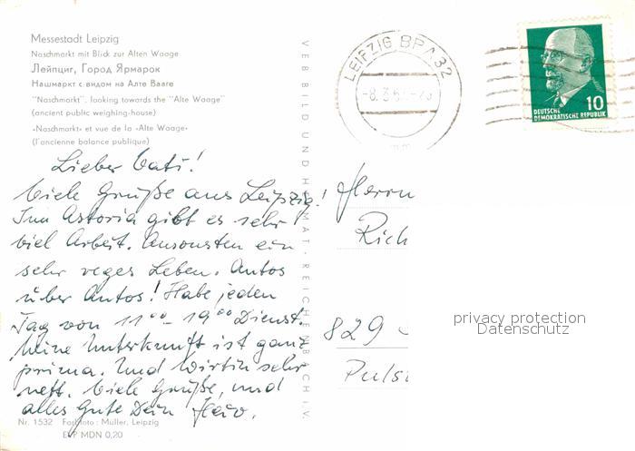 72616367 alte Postkarte LEIPZIG Sachsen Naschmarkt mit Blick zur Alten Waage Messestadt postalisch gelaufen Erhaltung siehe scans [FriedD77] KatCode: 11110014365000
