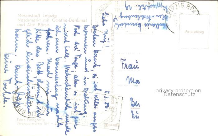 72314114 alte Postkarte LEIPZIG Sachsen Naschmarkt mit Goethe Denkmal postalisch gelaufen Erhaltung siehe scans KatCode: 11110014365000