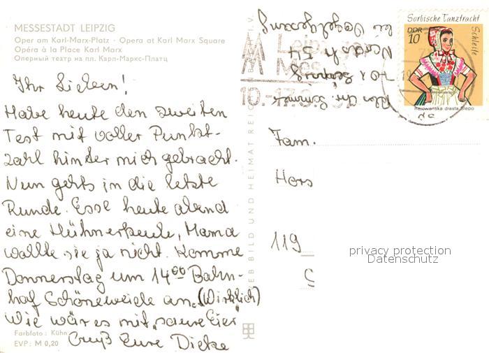 72941716 alte Postkarte LEIPZIG Sachsen Oper am Karl Marx Platz postalisch gelaufen Erhaltung siehe scans [WerneD78] KatCode: 11110014365000
