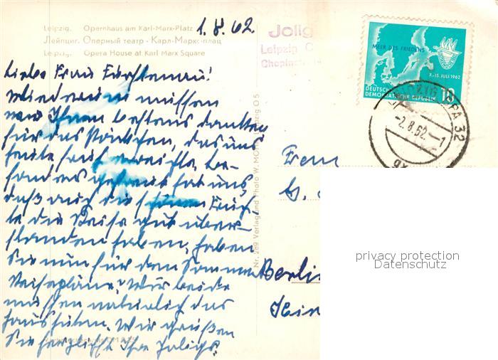 72951640 alte Postkarte LEIPZIG Sachsen Opernhaus am Karl Marx Platz postalisch gelaufen Erhaltung siehe scans [FriedD77] KatCode: 11110014365000