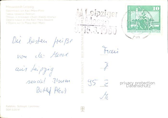 72325176 alte Postkarte LEIPZIG Sachsen Opernhaus am Karl Marx Platz postalisch gelaufen Erhaltung siehe scans KatCode: 11110014365000
