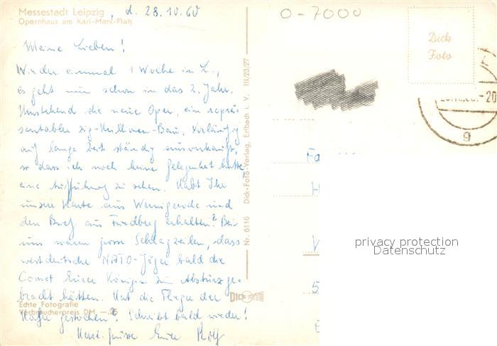 73030664 alte Postkarte LEIPZIG Sachsen Opernhaus Karl Marx Platz postalisch gelaufen Erhaltung siehe scans [KathaD81] KatCode: 11110014365000