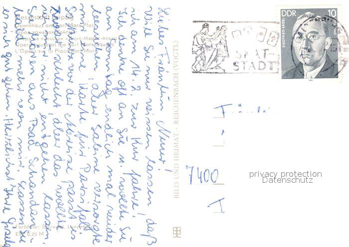 73023956 alte Postkarte LEIPZIG Sachsen Opernhaus Karl Marx Platz postalisch gelaufen Erhaltung siehe scans [KathaD81] KatCode: 11110014365000