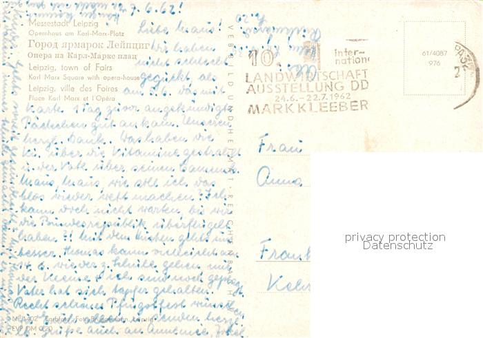 73251416 alte Postkarte LEIPZIG Sachsen Opernhaus Karl Marx Platz postalisch gelaufen Erhaltung siehe scans [KathaD81] KatCode: 11110014365000