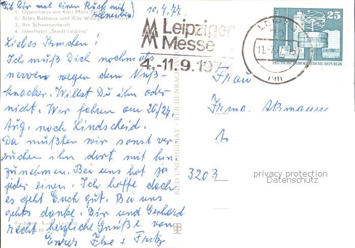 72229341 alte Postkarte LEIPZIG Sachsen Opernhaus Karl-Marx-Platz alte Rathaus Schwanenteich Interhotel Stadt Leipzig postalisch gelaufen Erhaltung siehe scans KatCode: 11110014365000