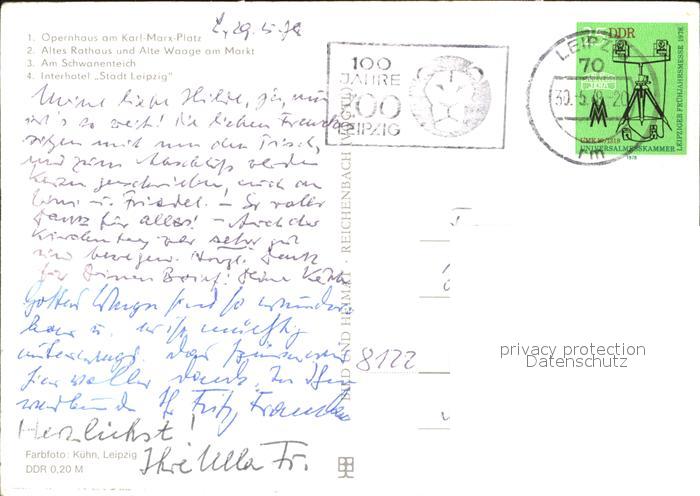 72373279 alte Postkarte LEIPZIG Sachsen Opernhaus Karl-Marx-Platz Altes Rathaus Hotel Stadt Leipzig postalisch gelaufen Erhaltung siehe scans KatCode: 11110014365000