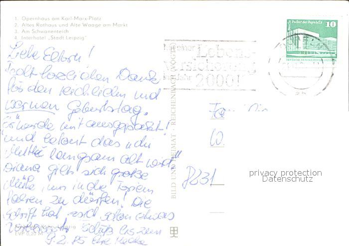 72374154 alte Postkarte LEIPZIG Sachsen Opernhaus Karl Marx Platz Altes Rathaus Schwanenteich Interhotel Stadt Leipzig postalisch gelaufen Erhaltung siehe scans KatCode: 11110014365000