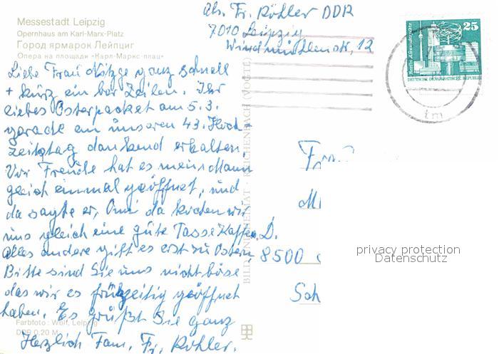72930542 alte Postkarte LEIPZIG Sachsen Opernhaus mit Karl Marx Platz Messestadt postalisch gelaufen Erhaltung siehe scans [FriedD77] KatCode: 11110014365000