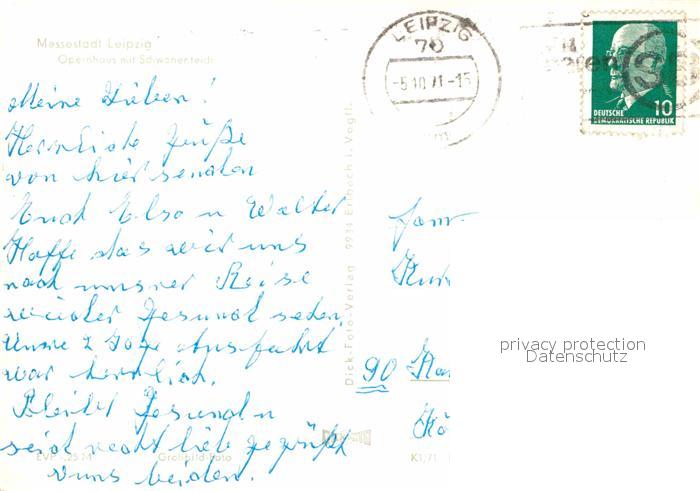 72729629 alte Postkarte LEIPZIG Sachsen Opernhaus mit Schwanenteich Messestadt postalisch gelaufen Erhaltung siehe scans [FriedD77] KatCode: 11110014365000
