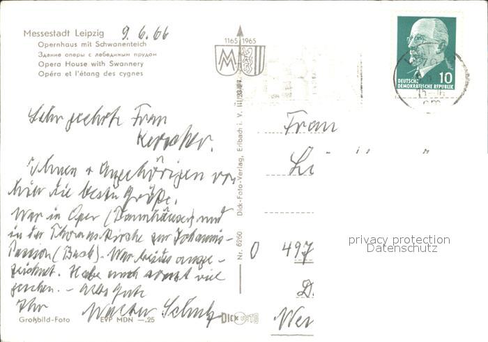 72263254 alte Postkarte LEIPZIG Sachsen Opernhaus Schwanenteich postalisch gelaufen Erhaltung siehe scans KatCode: 11110014365000