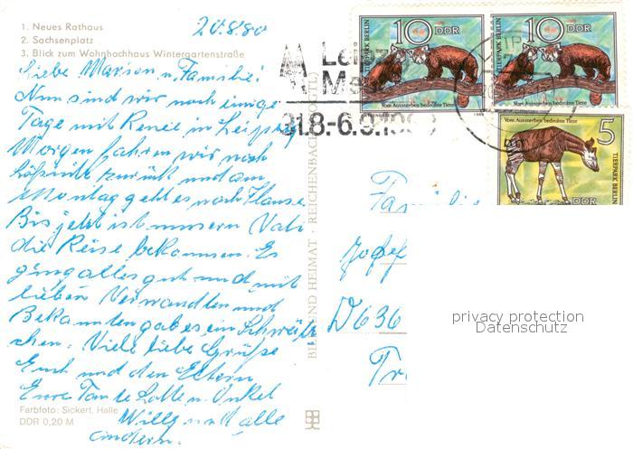 73224569 alte Postkarte LEIPZIG Sachsen Rathaus Sachsenplatz Wohnhochhaus Wintergartenstrasse postalisch gelaufen Erhaltung siehe scans [KathaD81] KatCode: 11110014365000