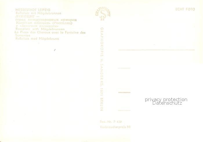 73669009 LEIPZIG Sachsen Rossplatz mit Maegdebrunnen postalisch nicht gelaufen Erhaltung siehe scans [WerneD78] KatCode: 11110014365000