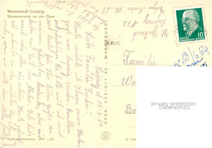 72979653 alte Postkarte LEIPZIG Sachsen Schwanenteich an der Oper Messestadt postalisch gelaufen Erhaltung siehe scans [FriedD77] KatCode: 11110014365000