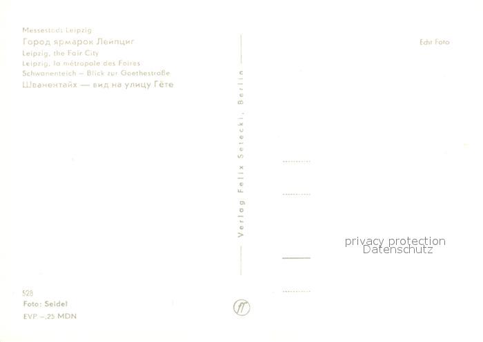 72938391 LEIPZIG Sachsen Schwanenteich Goethestrasse postalisch nicht gelaufen Erhaltung siehe scans [NatalD47] KatCode: 11110014365000