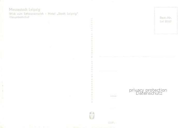 73013738 LEIPZIG Sachsen Schwanenteich Hotel Stadt Leipzig Hauptbahnhof postalisch nicht gelaufen Erhaltung siehe scans [WerneD78] KatCode: 11110014365000