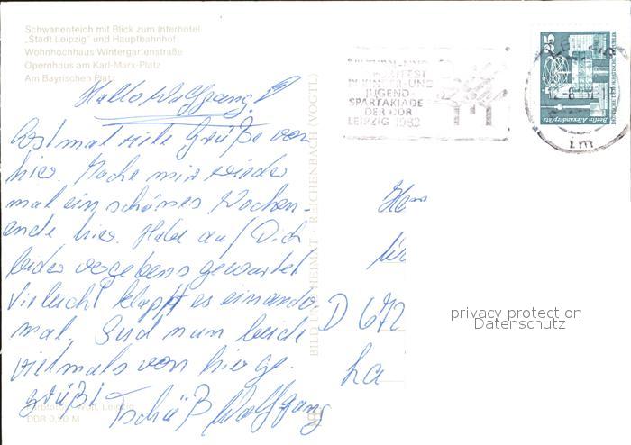 72261850 alte Postkarte LEIPZIG Sachsen Schwanenteich Interhotel Stadt Leipzig Bahnhof Wohnhochhaus Opernhaus Karl Marx Platz Bayrischer Platz postalisch gelaufen Erhaltung siehe scans KatCode: 11110014365000