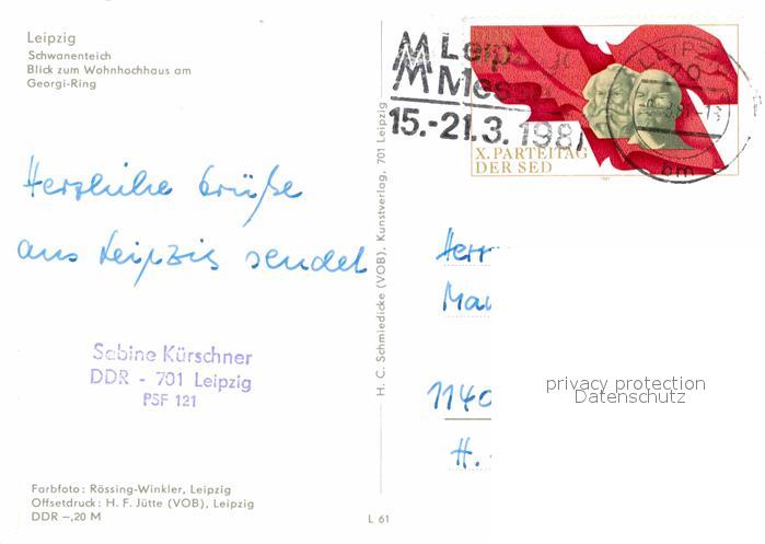 72841787 alte Postkarte LEIPZIG Sachsen Schwanenteich Wohnhochhaus am Georgi Ring postalisch gelaufen Erhaltung siehe scans [WerneD78] KatCode: 11110014365000