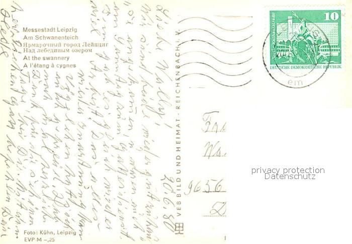 73139417 alte Postkarte LEIPZIG Sachsen Schwanenteich postalisch gelaufen Erhaltung siehe scans [NatalD47] KatCode: 11110014365000