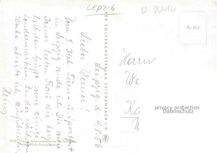 74060638 LEIPZIG Sachsen Schwimmstadion an der Stalinallee postalisch gelaufen Erhaltung siehe scans [WerneD78] alte Postkarte Wern Katcode 11110014365000