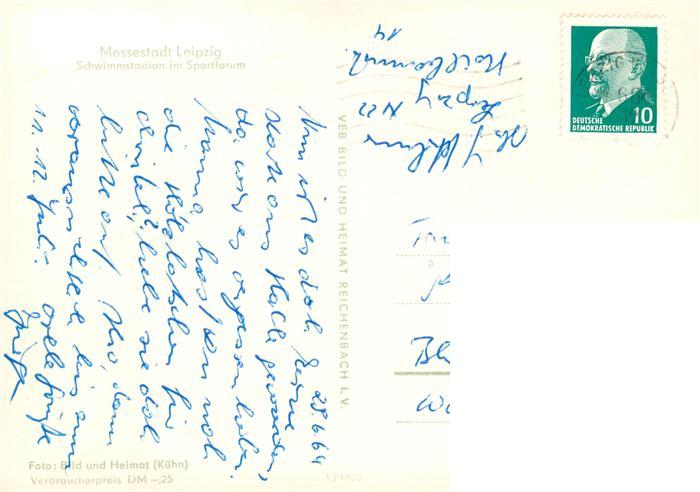 73922017 LEIPZIG Sachsen Schwimmstadion Sportforum postalisch gelaufen Erhaltung siehe scans [WerneD78] alte Postkarte Wern Katcode 11110014365000