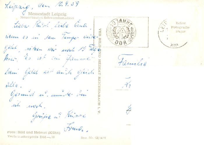 73924032 LEIPZIG Sachsen Schwimmstadion postalisch gelaufen Erhaltung siehe scans [WerneD78] alte Postkarte Wern Katcode 11110014365000