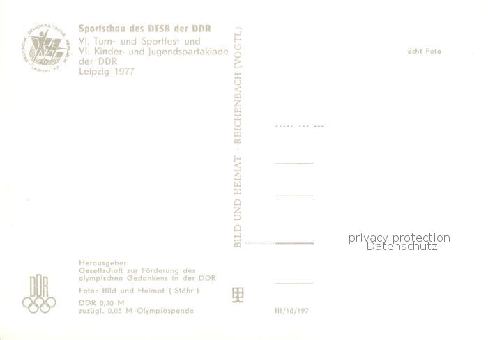 73793337 LEIPZIG Sachsen Sportschau d. DRSB d. DDR 6. Turnfest postalisch nicht gelaufen Erhaltung siehe scans [LiesaD40] Lies Katcode 11110014365000