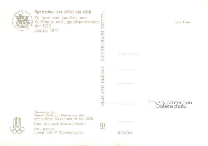 73793338 LEIPZIG Sachsen Sportschau d. DTSB d. DDR 6. Turnfest postalisch nicht gelaufen Erhaltung siehe scans [LiesaD40] Lies Katcode 11110014365000