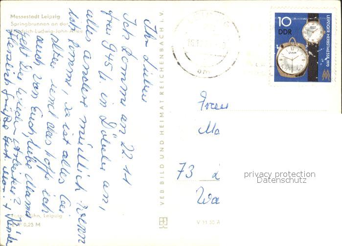71989629 alte Postkarte LEIPZIG Sachsen Springbrunnen Friedrich Ludwig John Allee postalisch gelaufen Erhaltung siehe scans KatCode: 11110014365000