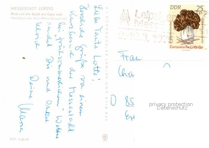 72892890 alte Postkarte LEIPZIG Sachsen Stadt mit Oper und Hochhaus der Karl Marx Universitaet postalisch gelaufen Erhaltung siehe scans [WerneD78] KatCode: 11110014365000