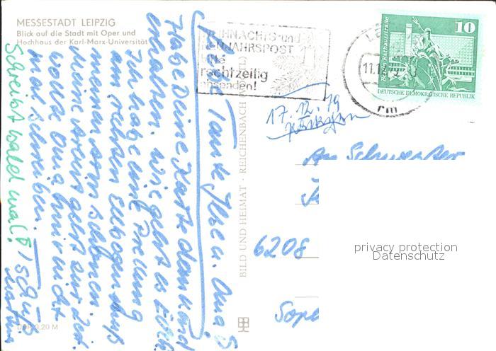 72248548 alte Postkarte LEIPZIG Sachsen Stadtbild mit Oper Hochhaus Karl Marx Universitaet Messestadt postalisch gelaufen Erhaltung siehe scans KatCode: 11110014365000