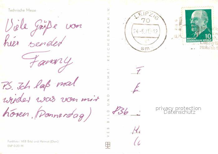 72773380 alte Postkarte LEIPZIG Sachsen Technische Messe Details postalisch gelaufen Erhaltung siehe scans [FriedD77] KatCode: 11110014365000