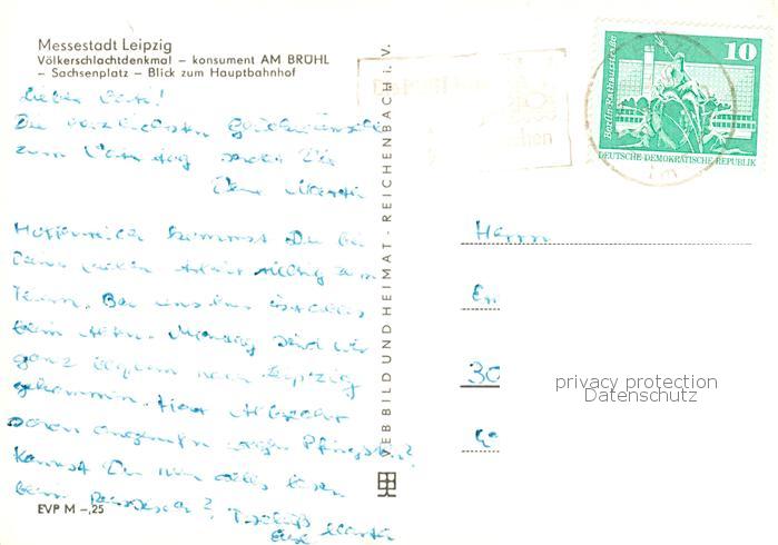 73868034 LEIPZIG Sachsen Voelkerschlachtdenkmal Konsument Am Bruehl Sachsenplatz Hauptbahnhof postalisch gelaufen Erhaltung siehe scans [WerneD78] alte Postkarte Wern Katcode 11110014365000