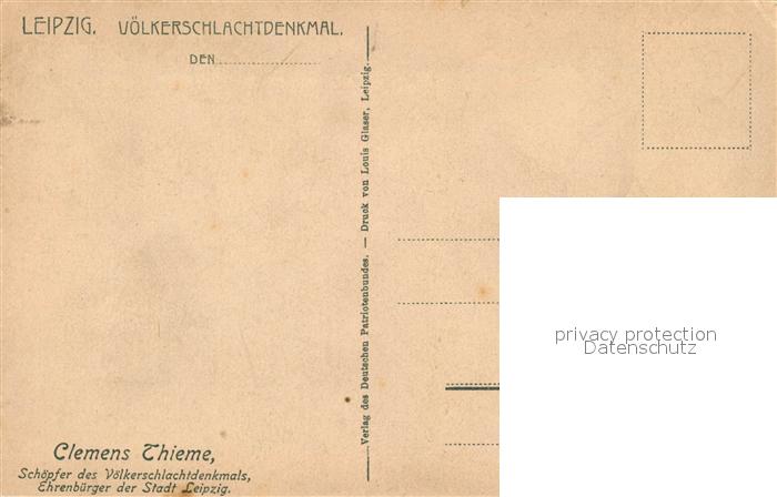 43370206 LEIPZIG Sachsen Voelkerschlachtdenkmal mit Portrait Clemens Thieme postalisch nicht gelaufen Erhaltung siehe scans [WerneD78] Wern Katcode 11110014365000