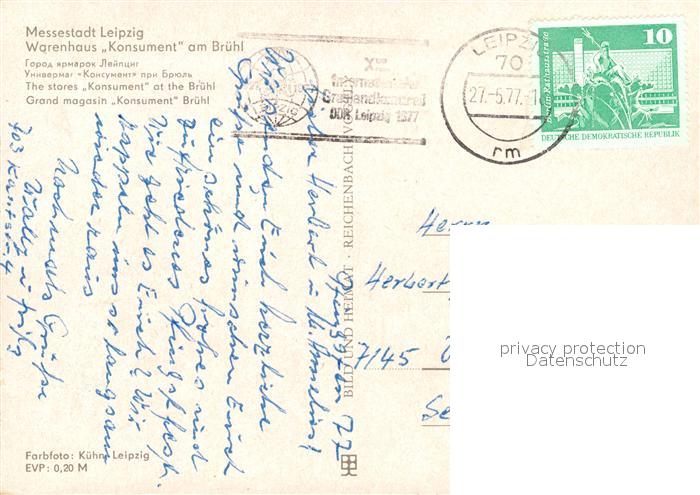 73103224 alte Postkarte LEIPZIG Sachsen Warenhaus Konsument am Bruehl postalisch gelaufen Erhaltung siehe scans [WerneD78] KatCode: 11110014365000