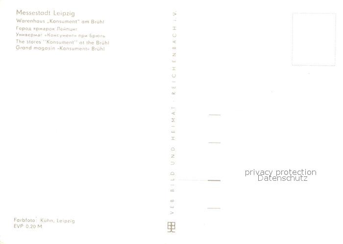 72997251 LEIPZIG Sachsen Warenhaus Konsument am Bruehl postalisch nicht gelaufen Erhaltung siehe scans [WerneD78] KatCode: 11110014365000