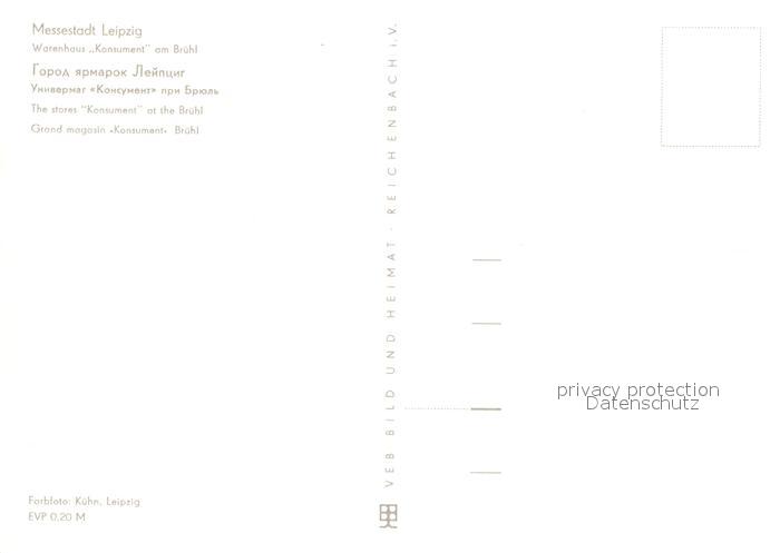 72974109 LEIPZIG Sachsen Warenhaus Konsument am Bruehl postalisch nicht gelaufen Erhaltung siehe scans [PaolaD17] KatCode: 11110014365000