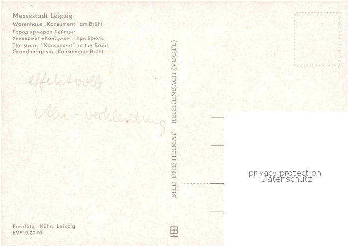 72782885 LEIPZIG Sachsen Warenhaus Konsument am Bruehl postalisch nicht gelaufen Erhaltung siehe scans [WerneD78] KatCode: 11110014365000