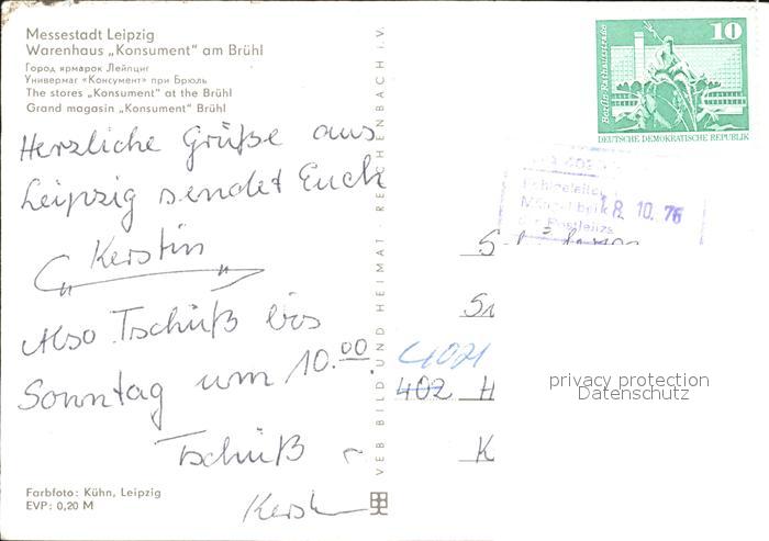 72424131 alte Postkarte LEIPZIG Sachsen Warenhaus Konsument am Bruehl postalisch gelaufen Erhaltung siehe scans KatCode: 11110014365000