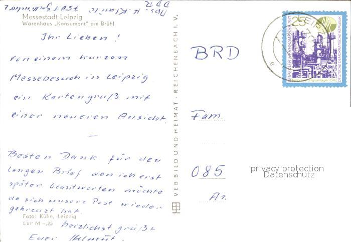 72085288 alte Postkarte LEIPZIG Sachsen Warenhaus Konsument am Bruehl postalisch gelaufen Erhaltung siehe scans KatCode: 11110014365000