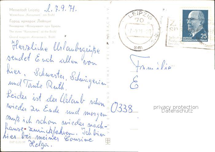 71939280 alte Postkarte LEIPZIG Sachsen Warenhaus Konsument am Bruehl postalisch gelaufen KatCode: 11110014365000