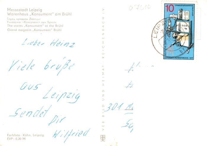 73900581 LEIPZIG Sachsen Warenhaus Konsument am Bruehl postalisch gelaufen Erhaltung siehe scans [WerneD78] alte Postkarte Wern Katcode 11110014365000