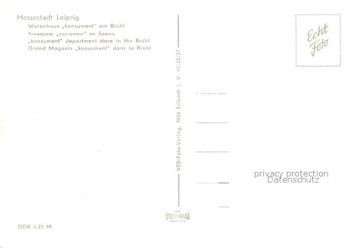 73741425 LEIPZIG Sachsen Warenhaus Konsument am Bruehl postalisch nicht gelaufen Erhaltung siehe scans [LiesaD40] KatCode: 11110014365000