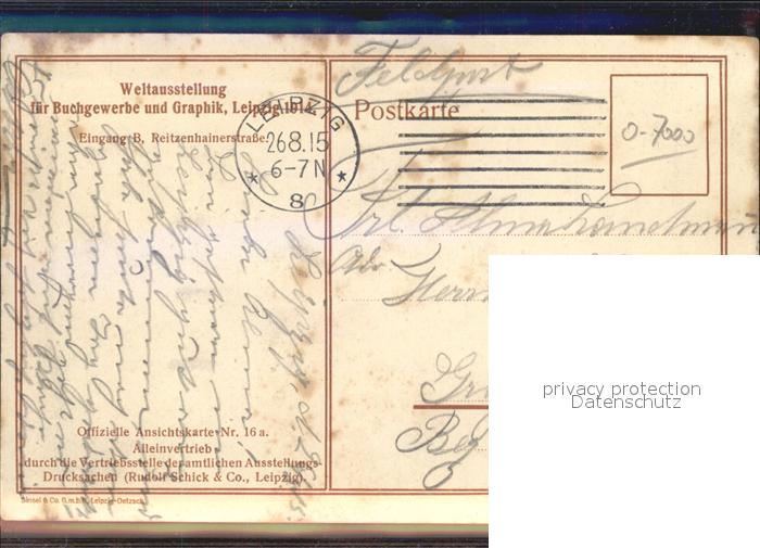 42468792 alte Postkarte LEIPZIG Sachsen Weltausstellung Buchgewerbe Graphik Eingang B postalisch gelaufen Feldpost Erhaltung siehe scans KatCode: 11110014365000