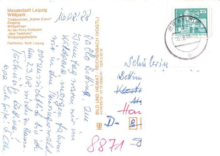 74142603 alte Postkarte LEIPZIG Sachsen Wildpark postalisch gelaufen Erhaltung siehe scans [IrynaD87] KatCode: 11110014365000