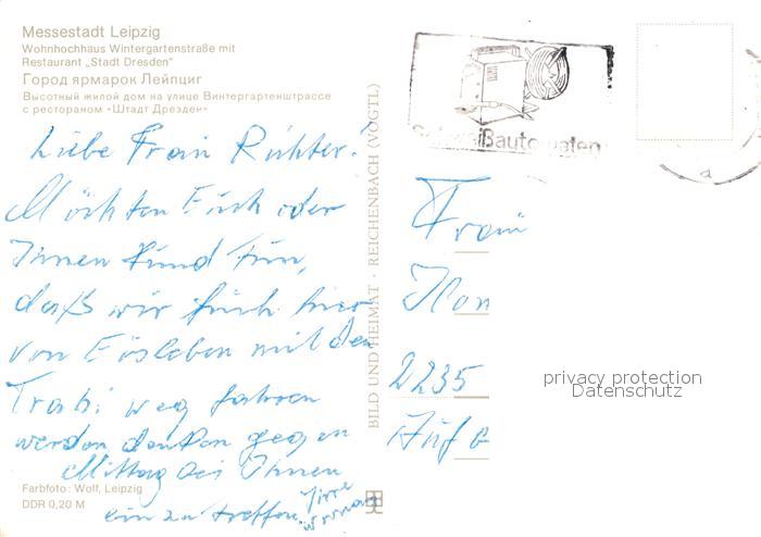 73065976 alte Postkarte LEIPZIG Sachsen Wohnhochhaus Wintergartenstrasse mit Restaurant Stadt Dresden postalisch gelaufen Erhaltung siehe scans [FriedD77] KatCode: 11110014365000